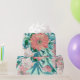 This girly spring Garden flowers and foliage watercolor paint, elegant botanical pattern, roses, wild spring flowers, Japanese green bamboo foliage and fruit plant branch with white flowers leaves, blooming nature pattern, blush, pink, coral, yellow and green colours, over a aqua green and carnival glass green blend background, modern, trendy art, great for everyday wear or home decor. A stylish, trendy, romantic design, simple artwork image.