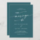 This boho chic teal blue QR code French wedding invitation is perfect for a minimalist wedding. The bold dark turquoise jewel tone modern bohemian design features simple rustic calligraphy with a unique yet classic style.