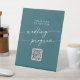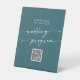 Boho Chic Teal Blue QR Code Wedding Program Pedestal Sign