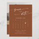 This boho chic terracotta QR code photo calendar save the date card is perfect for a minimalist wedding. The earthy burnt orange modern bohemian design features simple rustic calligraphy with a unique yet classic style.