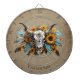 Boho Chic Watercolor Sunflower Feather Cow Skull Dartboard