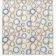 This shower curtain has a Boho design of overlapping circles on retro shades of green, brown, blue and grey.