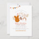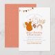 A modern baby shower theme featuring cute baby clothes and modern nursery decorations. The front of this design features bunting in the top left-hand corner, there is curved text at the top of the page inviting your guests to the special event. Below that, there is an arrangement of two leaves, a boho ruffled orange romper, adorable little shoes, a Nordic-style wooden stick wall hanging, a little bunny toy, and a rainbow decoration with little tassels. The mom-to-be's name appears below in script lettering, with the baby's name in bold capitals. Your event details appear underneath in elegant serif typography. Cards reverse to a white dotted pattern against a blush pink colour. Click on "Personalize" to change the wording and create your own custom baby shower invitations! Boy version is available in our store. Feel free to contact me with any design-related questions (before ordering), I'll be happy to help in any way I can!