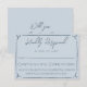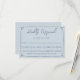 Une carte de réponse de mariage calligraphiée simple et élégante. Qui a un fond bleu frais et un cadre dessiné à la main bleu marina et des informations.