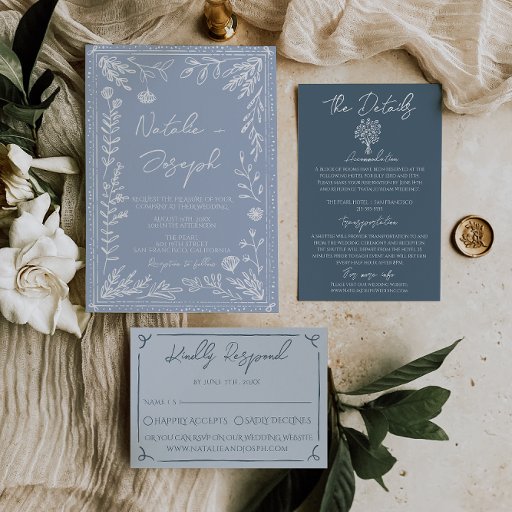 Azure Blue Hand Drawn Wedding Floral SuiteDesigned by marouane boukouyen