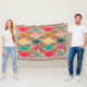 This throw blanket has a Boho design of diamonds with different patterns alternating with solid diamonds in a Boho colour palette.