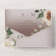 This simple yet elegant design has cream and brown roses on a soft white blur overlay with a brown background. The front flap contains the bride and groom's first initials. This design is available with or without dinner options on the RSVP card. Go to my store, Simply Farmhouse Press to choose either version. Personalized All-In-One invitations are a unique combination of both a beautifully printed custom invitation with an easy to tear off perforated RSVP postcard. And they are so easy to use! You simply fold, then seal the back flap with the three included clear stickers, and mail. And when your guests receive your custom invite, they just tear the perforated RSVP Card off and drop it back in the mail to you!