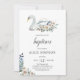 Boho Cute Swan Dusty Blue Beige Flowers Baptism Invitation