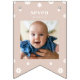 Celebrate your little one's journey with our Daisy First Birthday Banner. This boho bunting banner features a flag for each month of your baby's first year, allowing you to customize it with photos for each milestone. The banner is adorned with daisy accents and modern typography for a charming touch. Choose from three neutral colorways - beige, dusty rose, and grey-blue - to perfectly complement your decor. Celebrate with precious memories and create a beautiful keepsake with this adorable banner.