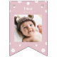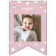 Célébrez le voyage de votre petit avec notre bannière Daisy First Birthday. Cette bannière de bottines comporte un drapeau pour chaque mois de la première année de votre bébé, vous permettant de le customiser avec des photos pour chaque jalon. La bannière est ornée d'accents marguerriers et de typographie moderne pour une touche de charme. Trois coloris neutres, beige, rose poussiéreux et gris-bleu, complètent parfaitement votre décor. Célébrez avec de précieux souvenirs et créez un beau souvenir avec cette adorable bannière.
