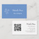QR code Botanical floral business card, with a simple daisy design with a blue background. With customizable lettering, you can add your own information. You add your website to the QR code field for your customers to scan. Great for promoting your design business with an elegant style.