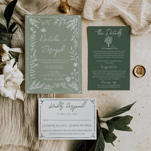 Sage Green Hand Drawn Floral Wedding SuiteDesigned by marouane boukouyen