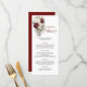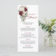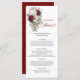 Complete your reception tablescape with this boho wedding menu, featuring watercolor burgundy and white roses with shimmering gold leaves. Designed in a sophisticated palette of burgundy, marsala, maroon, deep red, dark red, crisp white, and metallic gold, this menu combines boho charm with timeless elegance, perfect for any wedding theme.