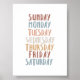 watercolor boho coloured days of week poster