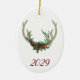 Boho Deer Antlers | Rustic Red Christmas Floral Ceramic Ornament