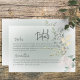 This wedding details enclosure card design features a simple, soft top loose bouquet of botanical greenery with a white bow on a soft green blur oval and white background. It's delicate and elegant. Created by Simply Farmhouse Press, it is part of the Boho Delicate Greenery Modern Floral Wedding suite of cards.