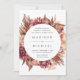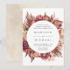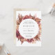 Elegant, unique floral wedding invitation featuring your wedding details encircled by burgundy, purple, blush, and coral watercolor flowers and lush foliage in rich beige and brown earth tones. The invite reverses to a light beige watercolor background.