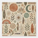 This boho-style wallpaper features a soothing palette of earthy tones, including terracotta, beige, and olive green. Hand-drawn elements such as sunbursts, crescent moons, feathers, arrows, and leafy botanical motifs create a calming and artistic vibe. With a subtle textured background reminiscent of natural fibres, this design is perfect for bohemian-inspired interiors seeking a cozy and free-spirited aesthetic.