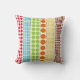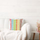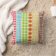 A pillow featuring rows of polka dots in various sizes and boho inspired shades of pink, green, orange, gold, blue, and burgundy.