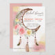 Romantic and unique Boho themed Dream Catcher Bridal Shower Invitation. Watercolor includes pink, peach, yellow and browns creating an engaging design.