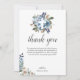Boho Dusty Blue Beige Flowers Baptism Thank You Card