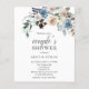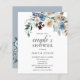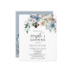 Boho dusty blue and neutral beige flowers with dried leaves.