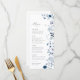 Boho Dusty Blue Navy Whimsical Fleur sauvage Elegant Simple Mariage Menu Modèle. Modèle de menu minimaliste à la fleur sauvage blanche de style bohème avec des fleurs bleues et marines poussiéreuses et des botaniques en aquarelle imprimée à la main. Menu modèle pour les mariages du printemps, de l'été, de l'automne et de l'hiver.