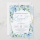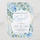 Boho Dusty Blue Floral Gold Geometric Frame Engage Invitation