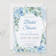 Boho Dusty Blue Floral Silver Geometric Bridal Invitation