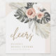 Celebrate the bride-to-be with these modern and elegant bohemian floral arch bridal shower wine labels featuring an arch covered with a floral bouquet made of dried palm leaves, monstera leaves and blush pink peonies.