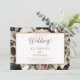 An ethereal boho floral bouquet in shades of winter white and dusty pink with seasonal evergreen greenery on a white and light and dark dusky pink edged panel over a light dusky pink background invites your guests to what is sure to be a memorable rustic "Wedding" occasion. The back features a dark dusty pink background. Simply add your names and wedding details to complete. Composite design by Holiday Hearts Designs (rights reserved).