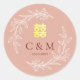 Boho dusty pink leaf wreath modern Chinese wedding Classic Round Sticker