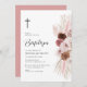 bohemian dusty rose and pink floral design baptism card. The text and colours can be edited.