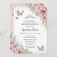 Boho Dusty Rose Floral Pampas Silver Quinceañera Invitation
