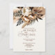 Boho earthy brown colour theme wedding invitation template instant digital download, metallic brown terracotta brown peonies pampas grass watercolor flowers simple wedding invitation with wedding details and qr rsvp at the back