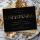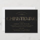 This modern and bohemian christening religious invitation flat card features bold faux foil vintage typography on a black background in a classic layout.