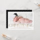 This modern and bohemian christening religious invitation flat card features bold faux foil vintage typography on the front overlaying a framed custom photo of your child.