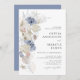 Boho Rustique Élégant Sur La Plage Bleu Dusty Simple Faire-part de mariage. Coquillages de bord de mer arrangés à la bohème invitation minimaliste avec boho élégant et simple bleu poussiéreux coquillages et coraux en aquarelle imprimée à la main. La couleur bleu arrière - plan est somptueuse pour les mariages boho et les mariages sur la plage. Invitations modifiables pour les mariages du printemps, de l'été, de l'automne et de l'hiver.
