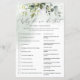 mixed eucalyptus greenery wreath combined modern calligraphy font lettering. This epic Greenery Foliage Bridal Shower Game is perfect for all boho or rustic style Bridal Shower Party. Design is featured watercolor hand painted forest green eucalyptus foliage combined modern script font. If you planning Boho Bridal Shower, this Greenery Foliage Bridal Shower game is perfect for you. Boho fairy tale feeling and epic vision. Dainty watercolor eucalyptus greenery mixed dark green leaves wreath and elegantly combined with trendy hand drawing font makes this Greenery Foliage Bridal Shower game very impressive.