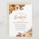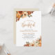 bohemian fall leaves and pumpkins and lovely calligraphy text thanksgiving dinner invitation.