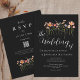 Boho Fall Wildflower meadow rustic floral script black and white Wedding Invitation with RSVP QR Code with Autumn Watercolor Flowers