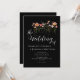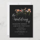 The design showcases delicate wildflowers in burnt orange, terracotta, golden yellow, coral, peach, purple, pink, and rich umber across a romantic elegant black background, evoking the beauty and warmth of the fall season. Stylish crisp white script paired with clean modern typography adds a refined touch, while the watercolor florals create a whimsical, romantic feel.
