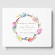 Watercolor feathers and beads pink, aqua, golden, brown and blue colourful bohemian art wedding wreath. Customize with your own couples names. Ideal to leave in a reception area for guests to share words of advice, a great keepsake memento from your marriage day. © Unique watercolor feather art and design by Sarah Trett. www.sarahtrett.com for www.mylittleedenweddings.com