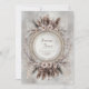 Invite your guests to a celebration of bohemian romance and natural elegance with this exquisite wedding invitation. The design features a stunning central white circular frame encircled by a lavish wreath. This wreath is composed of soft, layered beige and brown feathers, delicate pale pink daisy-like flowers, and intricate sprigs of white and copper-toned foliage. The frame itself is highlighted by delicate gold inner detailing that suggests antique craftsmanship, all set against a subtle, textured gray and white backdrop. This aesthetic beautifully blends earthy, organic elements with classic, opulent accents, perfectly setting the stage for a unique, stylish, or desert-themed wedding. This invitation card is ideally suited for a bohemian style wedding, a chic engagement celebration, or an outdoor reception. It would also perfectly suit a sophisticated fall or desert-themed party or a serene, elegant vow renewal ceremony. The card's captivating blend of pristine florals and a moody, monochromatic backdrop ensures it is versatile for any solemn ceremony, corporate gala, or refined birthday announcement.