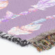 A repeat pretty strings of feathers and beads patterned throw in mauve, purple, golden yellow, pink, blue and brown hues. Would look great in a bohemian or native tribal style bedroom or lounge room. Background colour can be changed to suit your room if required currently purple. Original watercolor hand painted art by Sarah Trett for www.mylittleeden.com