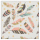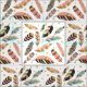 Pretty boho style feather images in colours of teal blue, gold, dark grey, dusty pink and cream float across a white background on this unique fabric. Great for many household or craft projects, or attire.