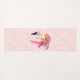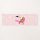 Whimsical watercolor design features Fiona Flamingo in Boho feather headband on pink background.