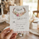 Boho Floral Antler Rustic White Wood Wedding RSVP Card.