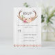 Boho Floral Antler Rustic White Wood Wedding RSVP Card