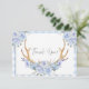 BOHO Floral Antlers Blue Gingham Thank You Card